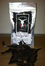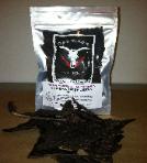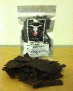 | ______________________________________________________________________ Beef Cracklins (Mild or Spicy) Bite size trimmings in a 6oz bag We think the cracklins are the tastiest part of the round. Fat, grizzle and meat, both crunchy and chewy. 8 flavors to choose from, please specify mild or spicy. ________________________________________________________________________ Sesame Teriyaki (Mild) The All Time Favorite! Savory, chewy and tasty. ________________________________________________________________________ Star Anise & Habanero (Spicy) Spicy and sweet, it's an amazing combination with a subtle hint of star-anise. The Habanero gives a great kick of spice with the traditional lingering heat. ________________________________________________________________________ Hickory Smoke Mild Wonderful robust hickory smoke, with and without kick! Both use the same great recipe. The mild jerky is made with freshly ground black pepper and the Spicy jerky is made with a special Habanero chili blend ________________________________________________________________________ Hickory Smoke Spicy Wonderful robust hickory smoke, with and without kick! Both use the same great recipe. The mild jerky is made with freshly ground black pepper and the Spicy jerky is made with a special Habanero chili blend ________________________________________________________________________ Thai Basil (Spicy) Inspired by travels to South East Asia, the Thai Chilis and basil are a winning combination. This is an absolutely amazing flavor sure to have you savoring every morsel! ________________________________________________________________________ Pineapple Basil (Mild) Sweet pineapple zing with the wonderful robust infusion of fresh Thai basil ________________________________________________________________________ Mandarin Szechuan (Medium) Sweet citrus flavor with floral undertones of Szechuan pepper combined with the burn of Thai Chili. ________________________________________________________________________ Chili-Lime Cilantro (Spicy) The spices in the marinade make for an amazing flavor combination. For those who like jerky with a burn,this one is for you! ________________________________________________________________________ Paleo Fusion (Spicy) Small batch, craft beer infused beef Jerky made with our spicy-savory rub. This is a true paleo offering, other than grain coming from the hops in the beer. ________________________________________________________________________ All The Milds! (3 - 3.3z bags total)